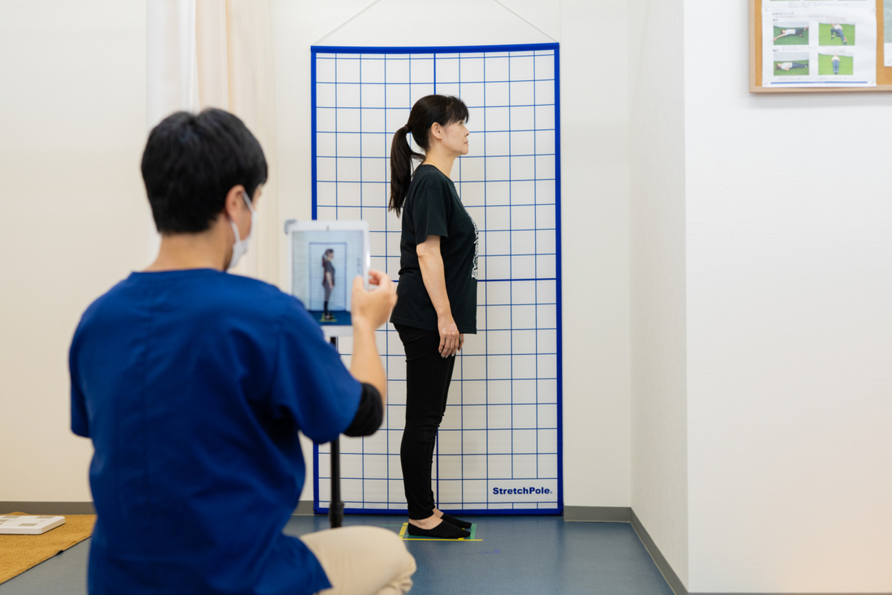 仕事柄、猫背が気になり来店。週に4回×2か月の利用で姿勢に目に見える変化が。来店間隔が空くと背中が多少丸く戻るが、再度ストレッチを行うと比較的早く本来の姿勢に整えることができている。